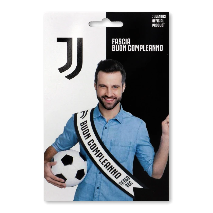 Polyester band with Buon Compleanno inscription and Juventus logo. Dimensions: 9,5 x 152 cm