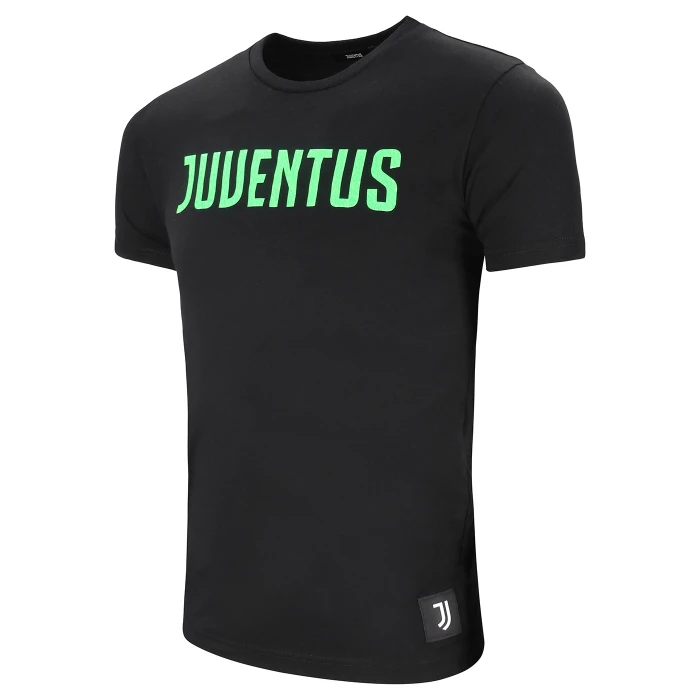 Black colour with “stone effect” print of the Juventus wordmark in fluorescent green, embellished by a jacquard label with Icon logo sewn on the bottom left.