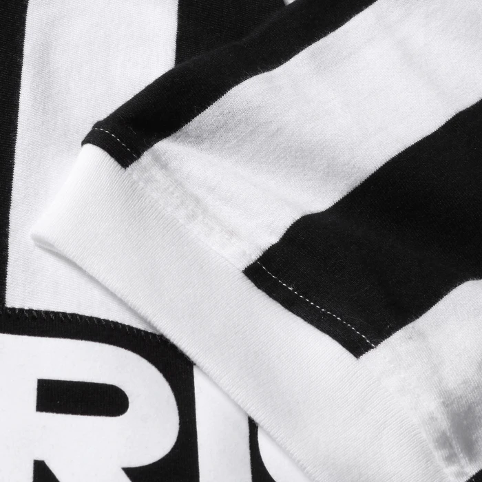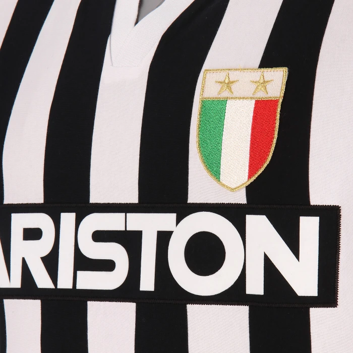 Juventus short-sleeved 100% cotton jersey, V-collar, flocked sponsor, embroidered scudetto and stars.
