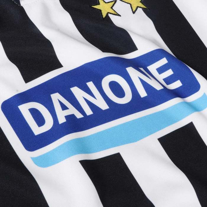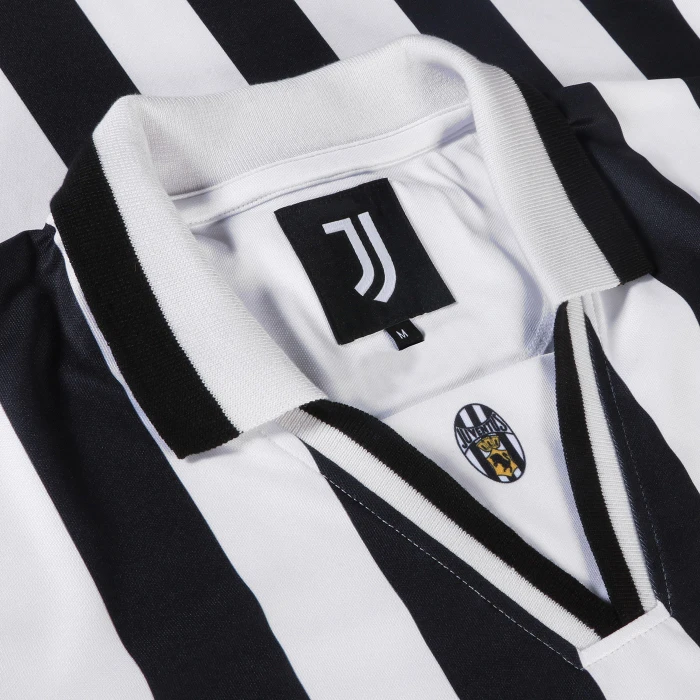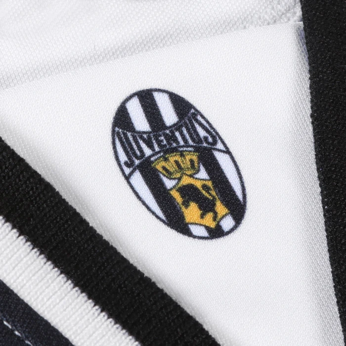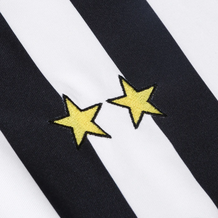 Juventus short-sleeved 100% polyester jersey, crew-neck collar, sublimated logo, printed sponsor, embroidered stars.
