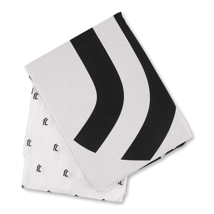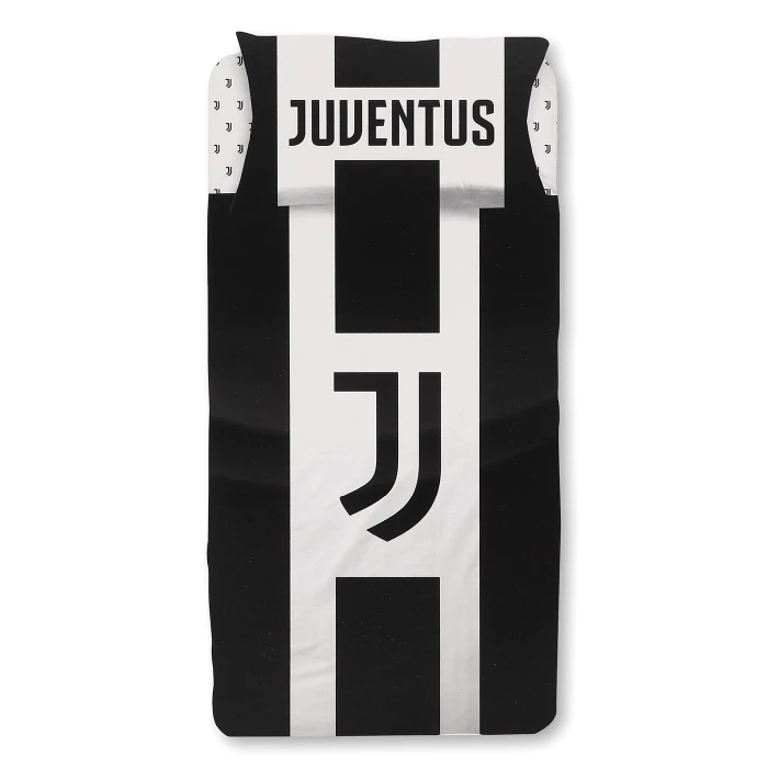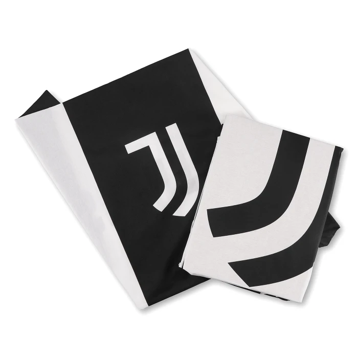 Bedroom queen size set with Juventus logo. 1 pillowcase cm 50 x 80 + queen size sheet cm 180 x 295 + fitted sheet cm 130 x 200. 100% cotton.