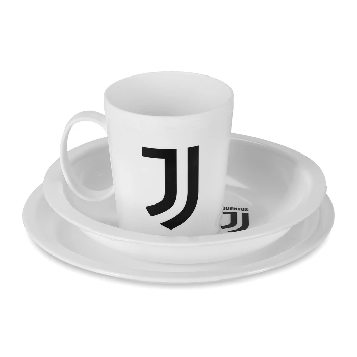 Set composed by 2 dishes and a mug, white with black Juventus logo.