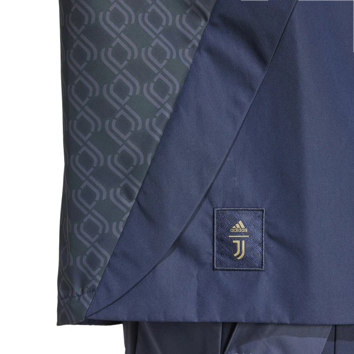 Windreaker jacket with long sleeves and elastics cuffs. High neckline, side pockets, full zip and elastic hem. Juventus and adidas logos, 100% polyester.