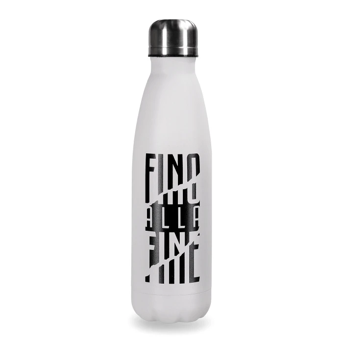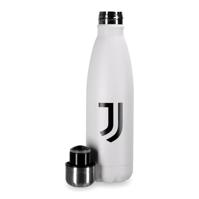 Stainless steel thermic bottle with Juventus logo and Fino Alla Fine inscription. Ideal for maintaining the temperature of water and drinks. 500 ml / 17 fl.oz.