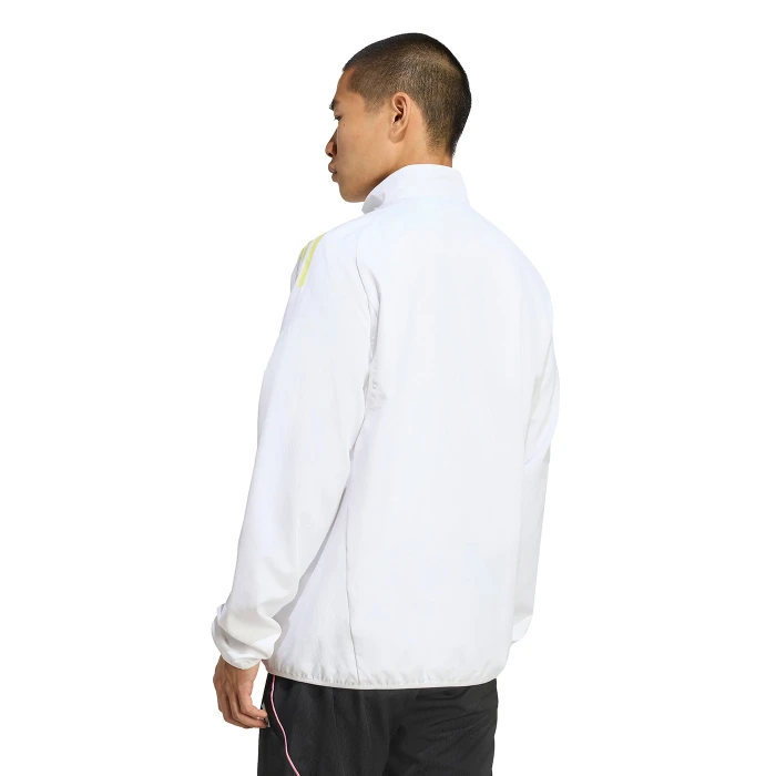This slim-fit jacket, crafted from 100% recycled polyester woven material, is designed for high performance both on and off the pitch.