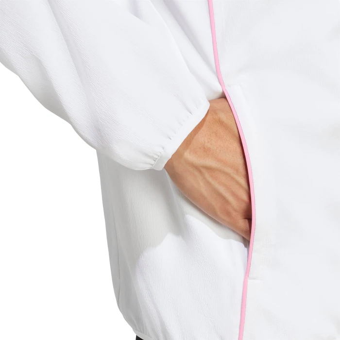 Featuring adidas AEROREADY technology to keep you feeling dry, it combines modern design with practical features like a full zipper and mesh inserts, while its sleek silhouette and smooth woven fabric combine to ensure every wear is super-comfortable.